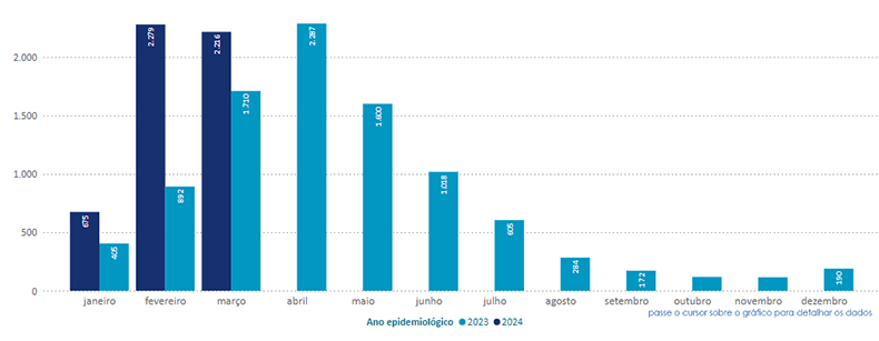 Os números de fevereiro impressionam. No ano passado foram registrados 892 casos da doença, já esse ano o número de casos saltou para 2.279, um crescimento superior a 250% no número de casos, no mesmo período.