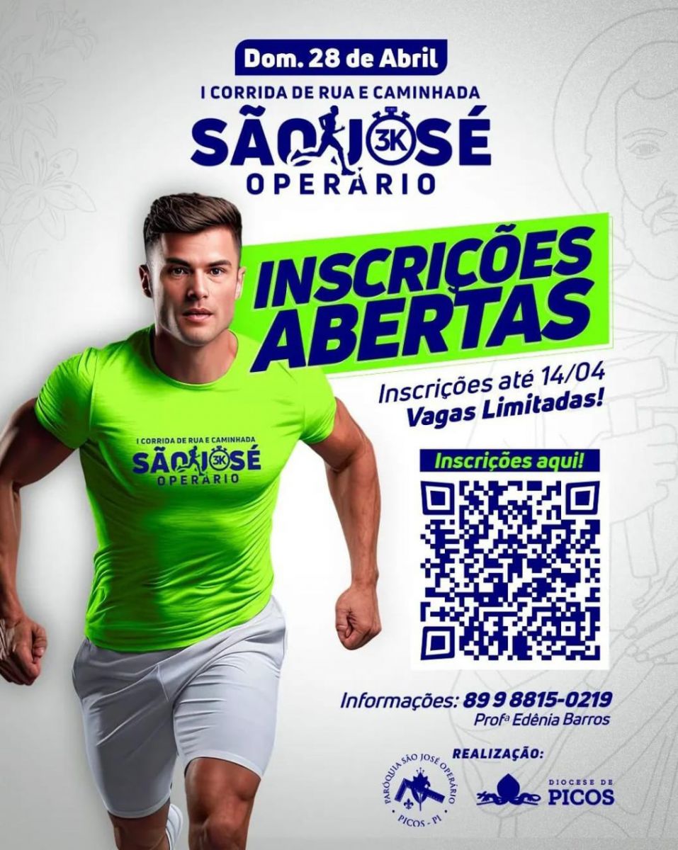 Fazendo parte também da programação do festejo, a Paróquia irá promover no dia 28 de abril a I Corrida de Rua e Caminhada de São José Operário.