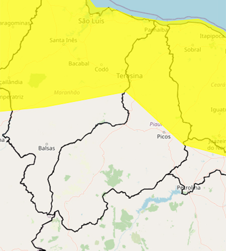 Também é previsto tempo seco em áreas do sudeste do Piauí e meio-oeste da Bahia, ou seja, sem previsão de chuvas.