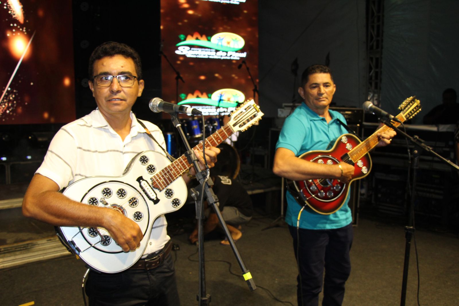 Genival Sousa e Dedé Lacerda entoaram repentes que enfatizaram o progresso do município e a boa administração.
