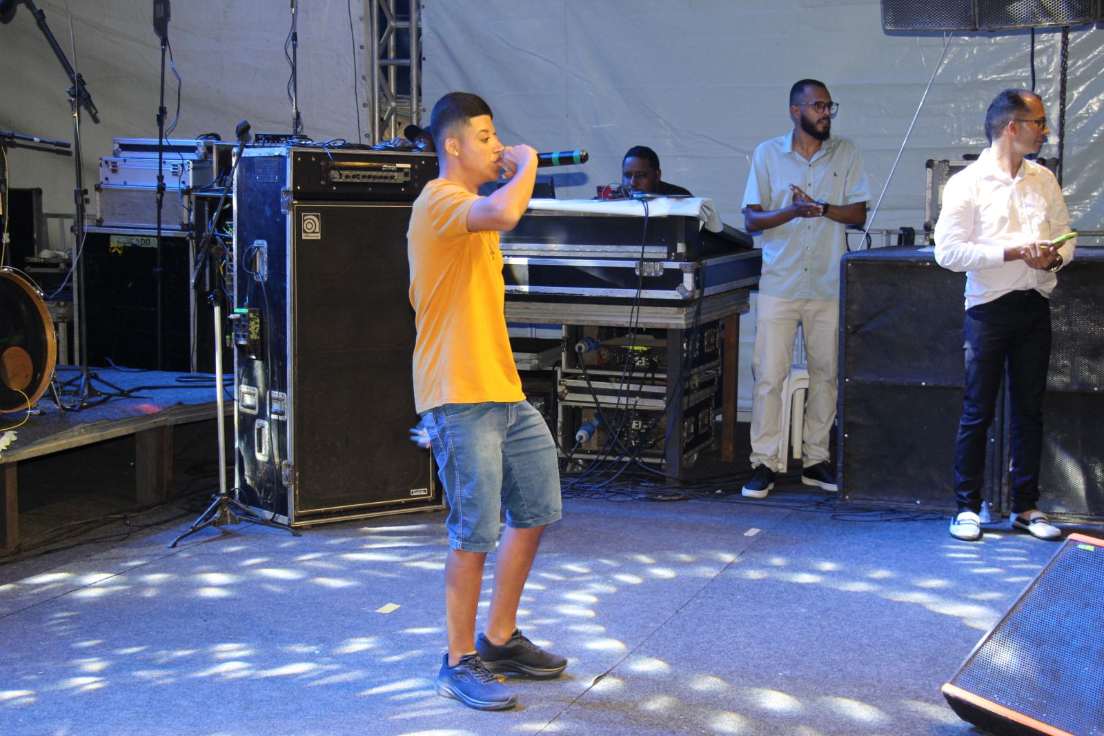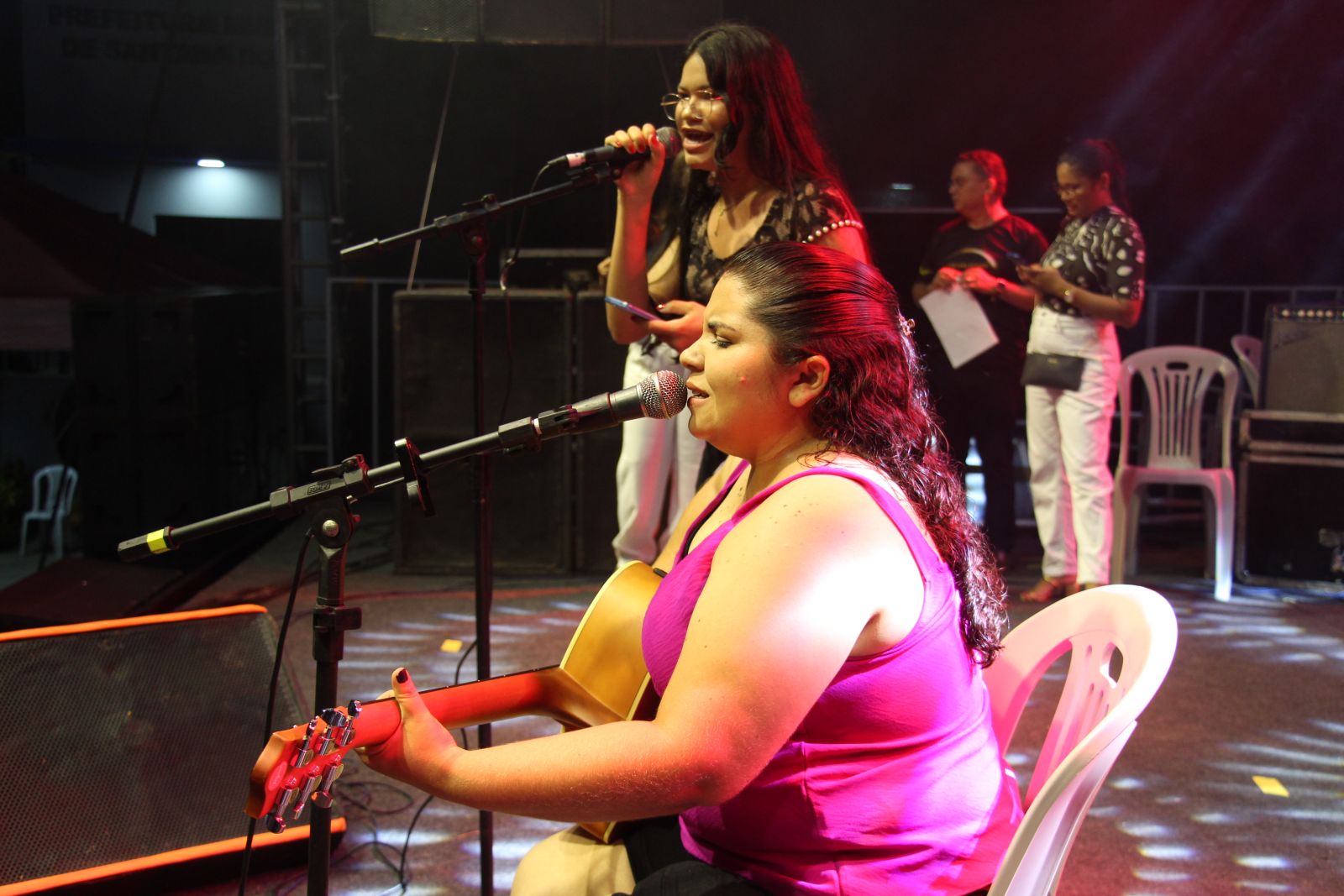 Francielton MC subiu ao palco pela primeira vez e embalou o público com reggae. Logo depois foi a vez da dupla formada por Videlly Moura e Flávia Santos cantar sucessos de Rita Lee e outros de destaque nacional.