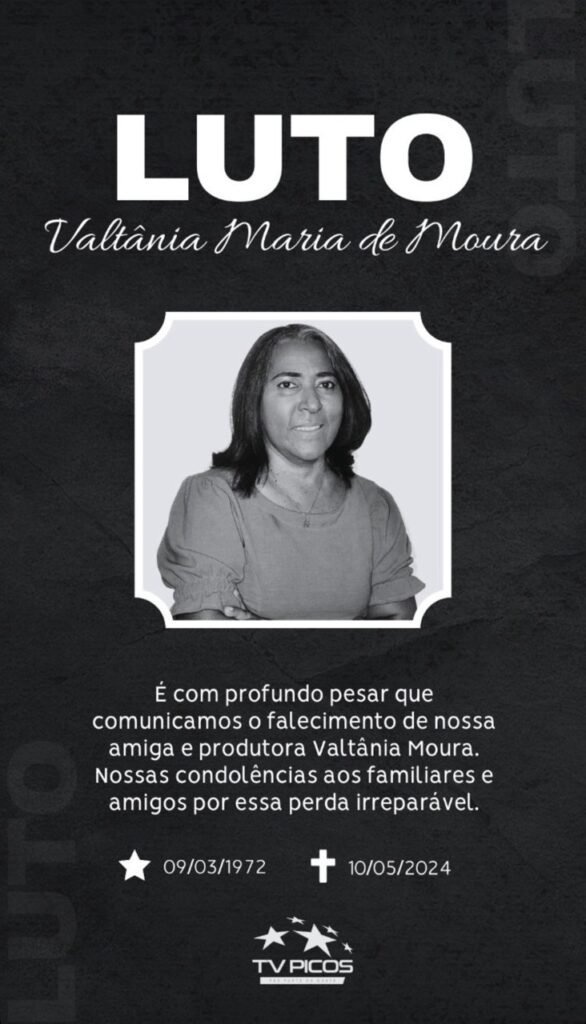 Uma triste notícia comoveu a cidade de Picos na manhã desta sexta-feira, 10 de maio. Faleceu aos 48 anos, a jornalista e conselheira tutelar, Valtânia Maria de Moura, vítima de um câncer.