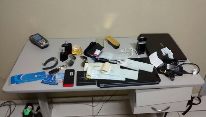 Carlos Andreolle dos Santos e Rafael Henrique foram presos em flagrante e autuados por furto qualificado. Com a dupla a polícia encontrou vários aparelhos celulares, dois notebooks, perfumes, cartões de banco, documentos das vítimas, um veículo Golf de cor vermelha e placa do Maranhão, além de duas carteiras de bolso com documentos e cartões em nome de Rud Alexandre de Sousa.