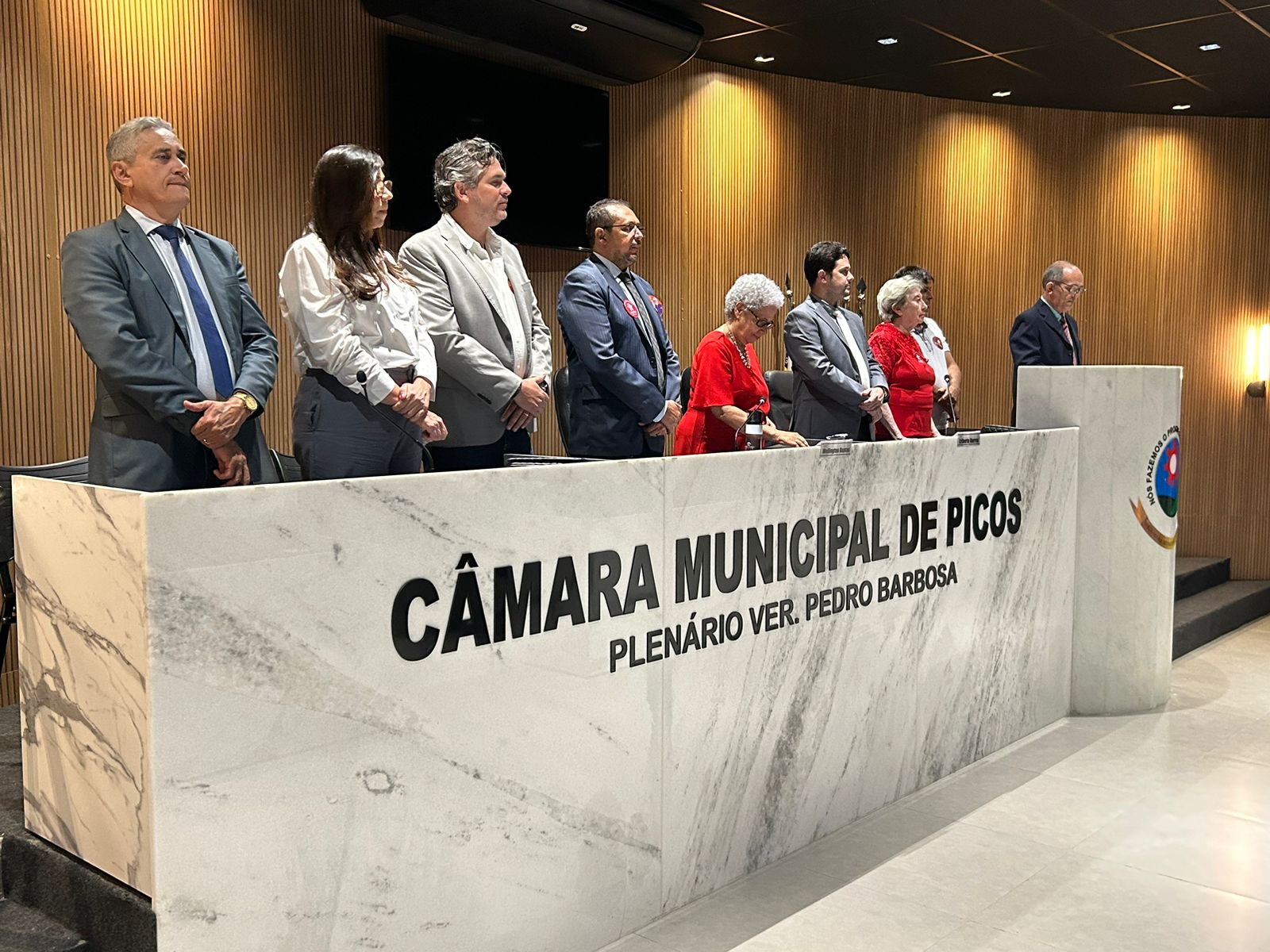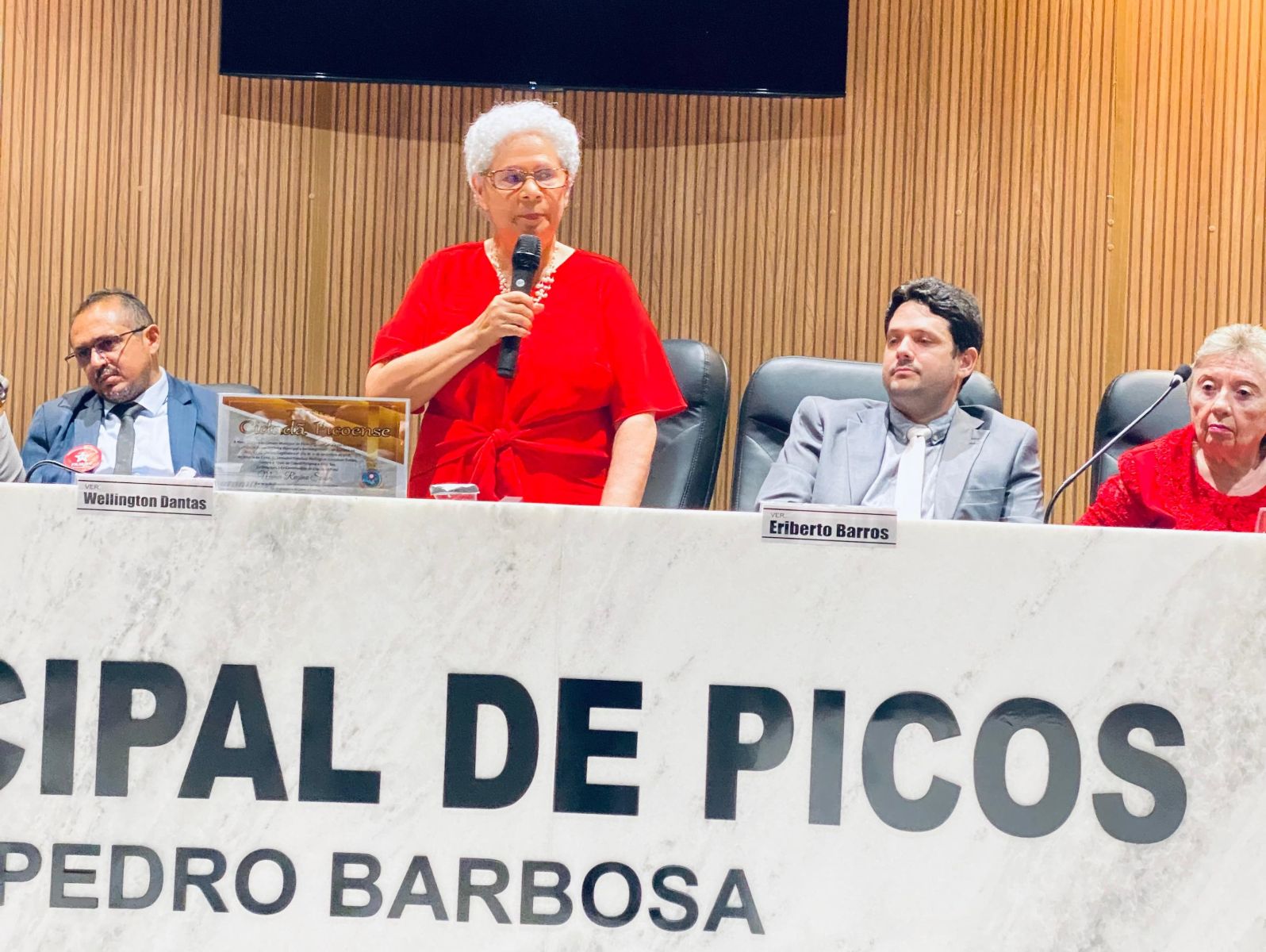 A Câmara de Vereadores de Picos concedeu nesta quarta-feira, 13 de junho, o titulo de cidadania picoense a secretária de Assistência Social, Trabalho e Direitos Humanos do governo do Piauí, Regina Sousa.