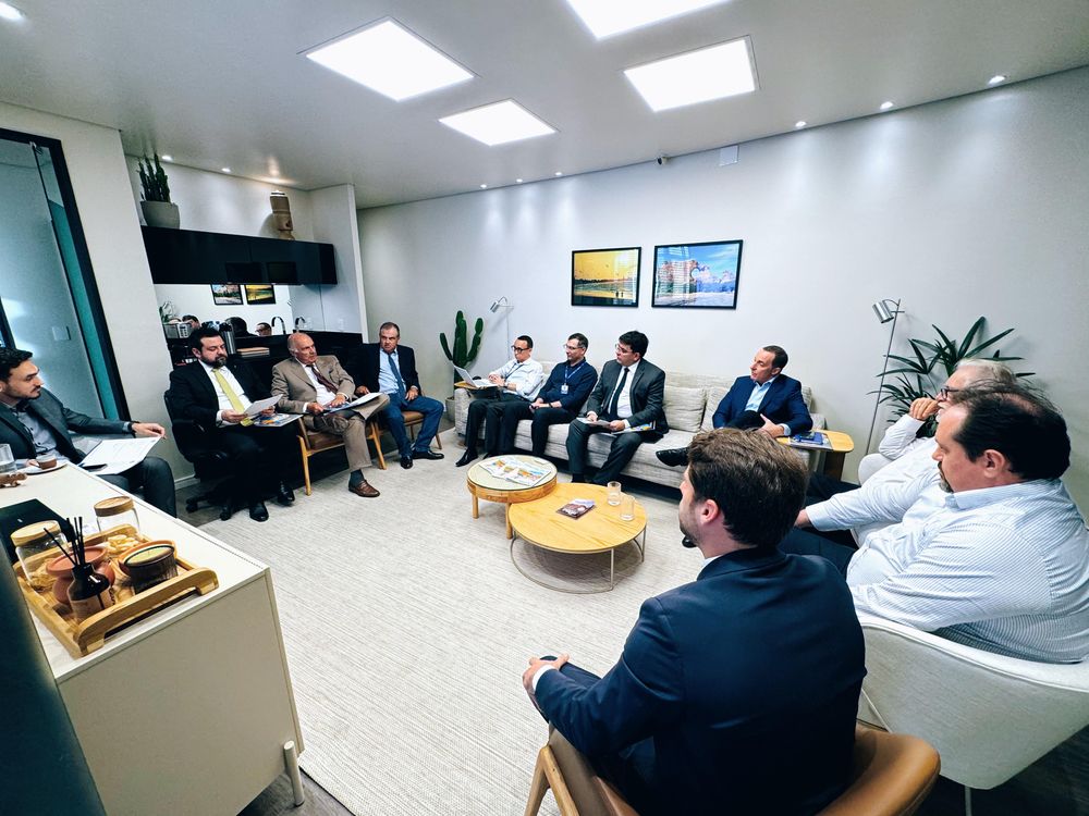 Por fim, Rafael recebeu os representantes da CNAGA Armazéns Gerais Alfandegados, empresa brasileira que atua na área de logística alfandegária. Lá, foi apresentado o projeto do terminal de minério do Porto Piauí.