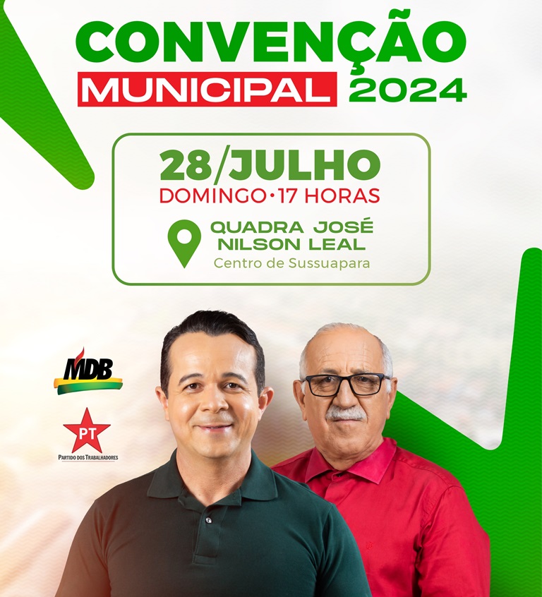 Está marcada para o próximo dia 28 deste mês, domingo, a convenção dos partidos Movimento Democrático Brasileiro e Partido dos Trabalhadores no município de Sussuapara. Os convencionais das duas legendas vão escolher e homologar durante o evento partidário os nomes do atual prefeito Naerton Silva Moura (MDB) e do atual vice-prefeito Francisco das Chagas Moura, o Chaguinha (PT), como candidatos à reeleição.