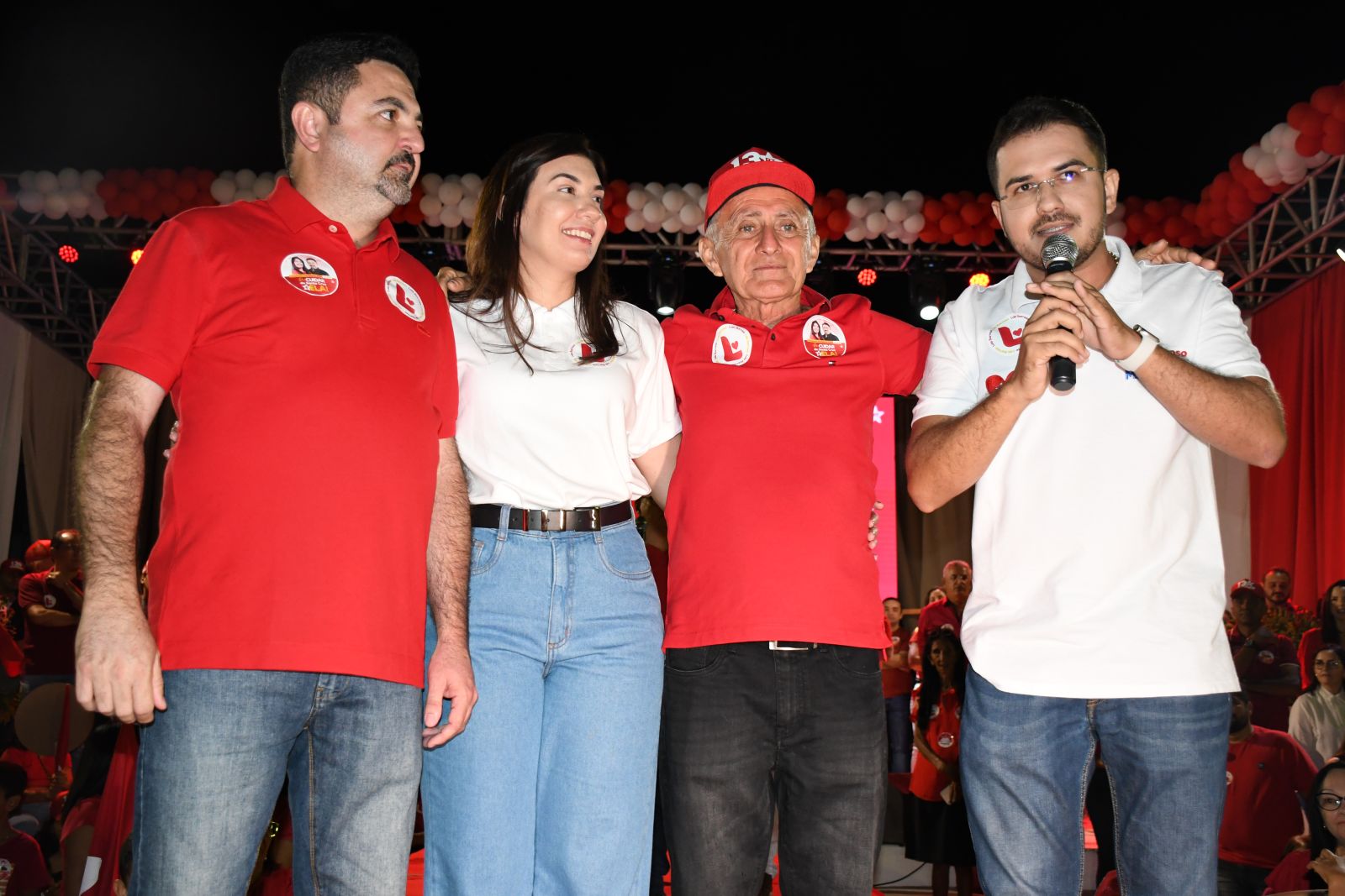 O evento político aconteceu no Clube Emoções e homologou as candidaturas de Laís Barroso (PT) para prefeita e Marcelo Martins (PSD) para vice-prefeito.