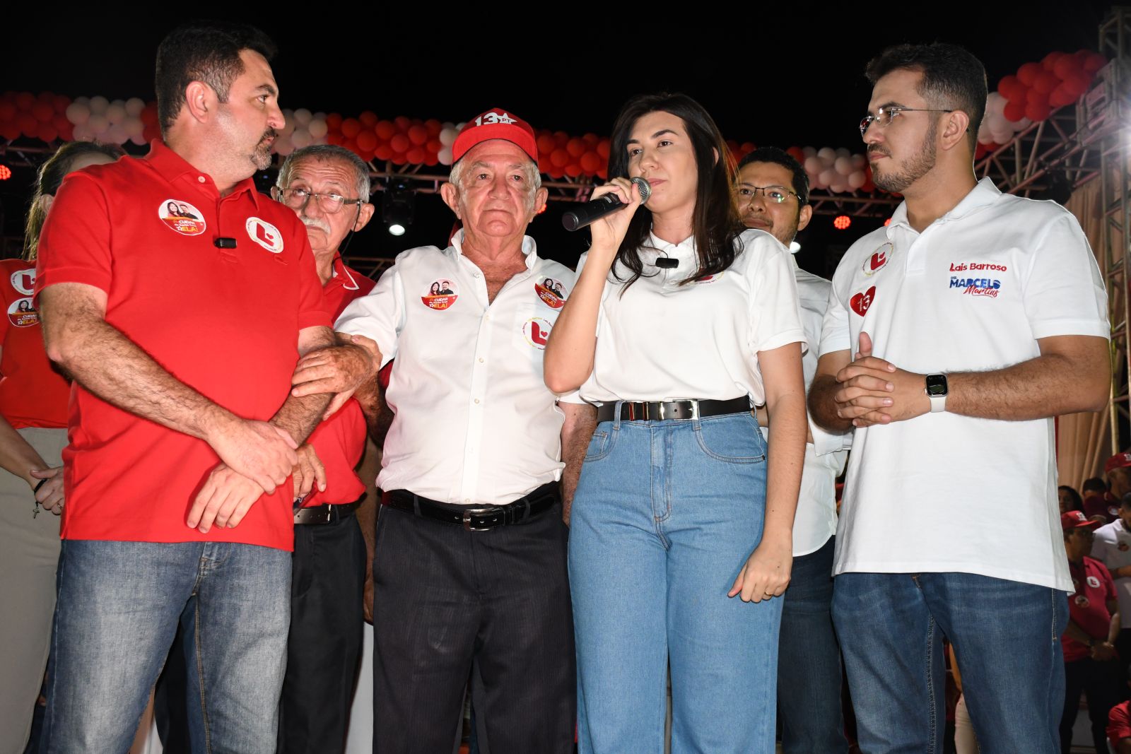 “Quero agradecer a presença de todos vocês, o momento aqui é de gratidão. O prefeito Barroso Neto está de consciência tranquila, pois o que esteve ao meu alcance eu busquei de todas as formas fazer. Sempre busquei fazer de melhor para nosso povo, para a nossa cidade, para nossas comunidades. Eu nasci aqui, moro aqui, estou aqui todos os dias, trabalhando noite e dia, para ver o povo dessa cidade cada vez mais feliz. Não poderia ser qualquer um para continuar meu trabalho. Os nomes de Laís e Marcelo foram unanimes junto ao grupo e o mais importante, foram aceitos por vocês”, discursou Barroso.