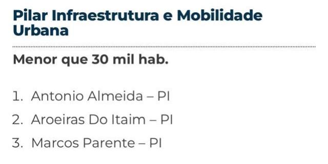 Aroeiras do Itaim foi premiada na categoria Pilar Infraestrutura e Mobilidade, para município com menos de 30 mil habitantes.