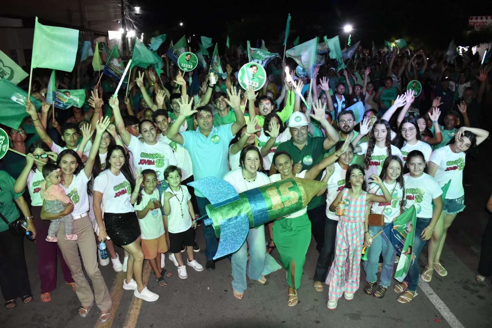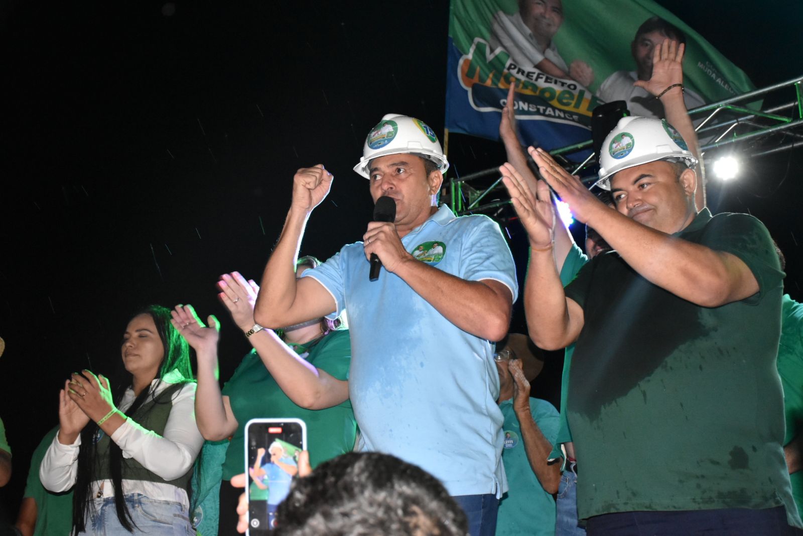 Em seguida foi realizado um grande comício na Praça de Eventos da cidade, que encerrou as ações de campanha do grupo oposicionista. Fizeram uso da palavra os candidatos a vereador Mateus Vicente, Iago Sousa, Neguinho do Lino, Keila, Jorginho, Francisca do Deim, Vanessa da Pousada, Nego Alexandre e Miguelão, assim como, o candidato a vice-prefeito.