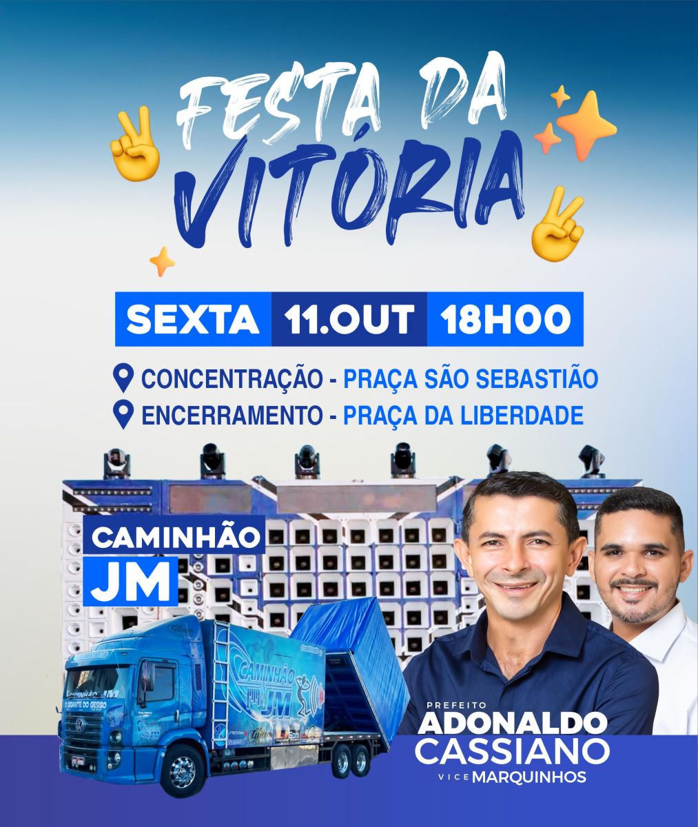 Após a vitória com 52,98% da preferencia do eleitorado santanense, Adonaldo Cassiano e Marquinhos de Nem realizarão a festa da vitória em Santana do Piauí.