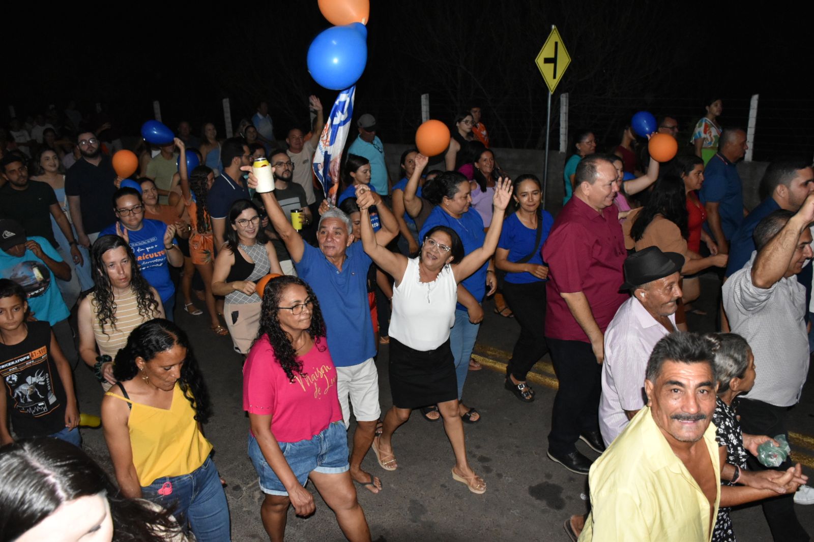 A “Festa da Vitória” iniciou-se com a concentração da população na Praça São Sebastião, cartão-postal da cidade. Com a chegada do prefeito eleito, Adonaldo Cassiano, e do vice, Marquinhos de Nem, todos seguiram em um “Arrastão” até a Praça da Liberdade.