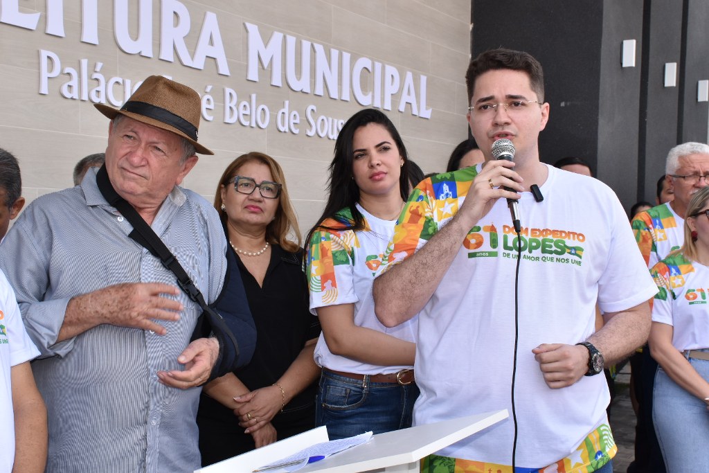 Às 9h, a cerimônia oficial teve início com o hasteamento das bandeiras, seguido da inauguração da nova sede da Prefeitura Municipal, agora chamada “Palácio José Belo de Sousa”, em homenagem ao primeiro prefeito da cidade. O momento contou com a presença do prefeito Dr. Abimael Lima, da vice-prefeita Renata Belo, do deputado estadual Severo Eulálio, além de vereadores, secretários municipais e da população.