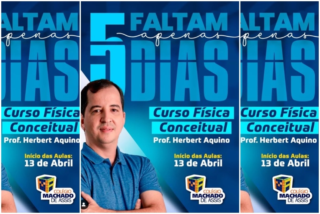 O Colégio Machado de Assis de Picos promoverá o curso de “Física Conceitual” tendo em vista o ENEM. As aulas serão ministradas por Herbet Aquino, o melhor professor de Física do Piauí; e a primeira já acontece na manhã do próximo domingo (13), das 8h00 às 12h30min, no auditório do Machado Internacional, endereçado no bairro Canto da Várzea.