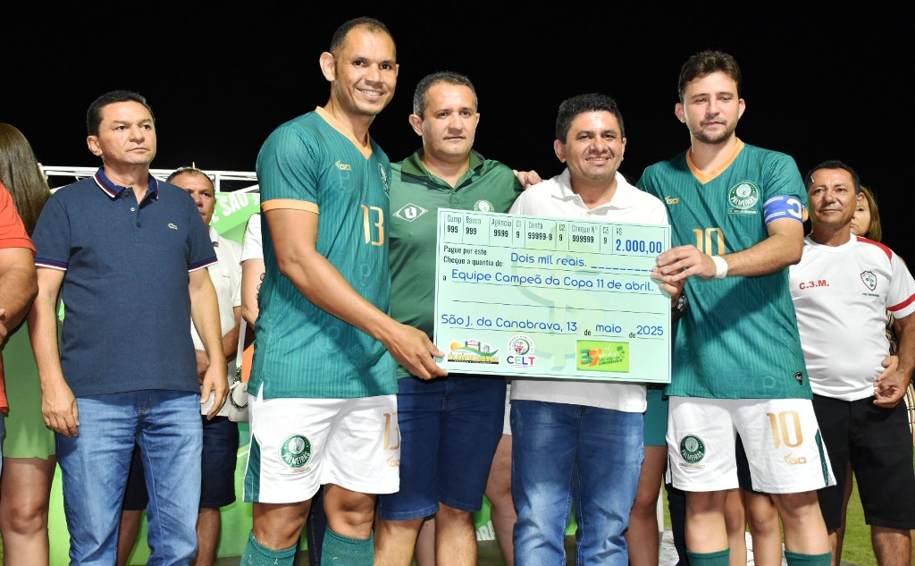 Em clima de festa e emoção, o time do Palmeiras venceu a equipe da Portuguesa por 3 a 0 e conquistou o título da Copa 11 de Abril, um Quadrangular de Futebol, que marcou as comemorações pelos 37 anos de emancipação política do município de São João da Canabrava.