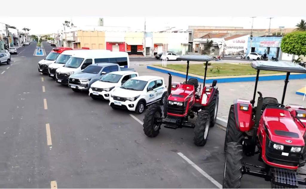 Durante a cerimônia, a gestão entregou dois veículos tipo van, três automóveis e três tratores, investimentos importantes para fortalecer o transporte escolar, a saúde e o apoio às atividades agrícolas e urbanas do município.