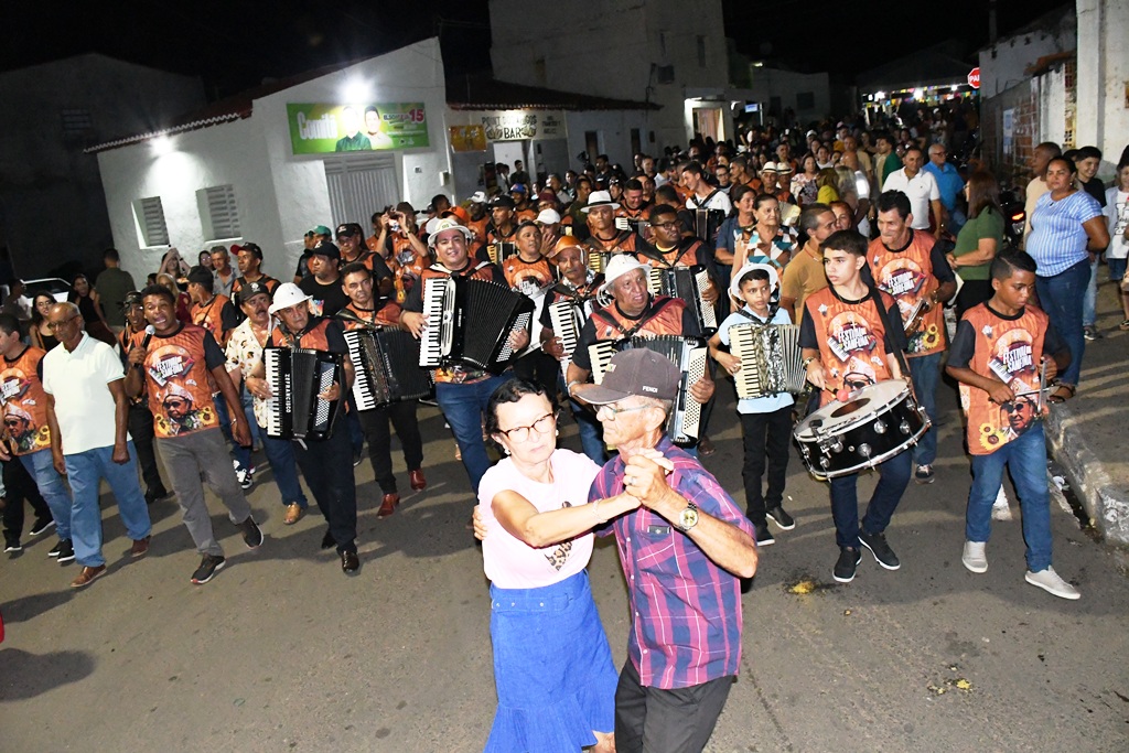 À noite, após a novena, a festa ganhou as ruas com a realização da Sanfonada, uma animada passeata de sanfoneiros pela Avenida São João Batista, conduzindo um verdadeiro cortejo musical em direção ao largo padre Manoel Florêncio, ao lado do Mercado João José Bezerra. Acompanhado por moradores e visitantes, o percurso foi um espetáculo à parte, levando alegria e música ao coração da cidade.