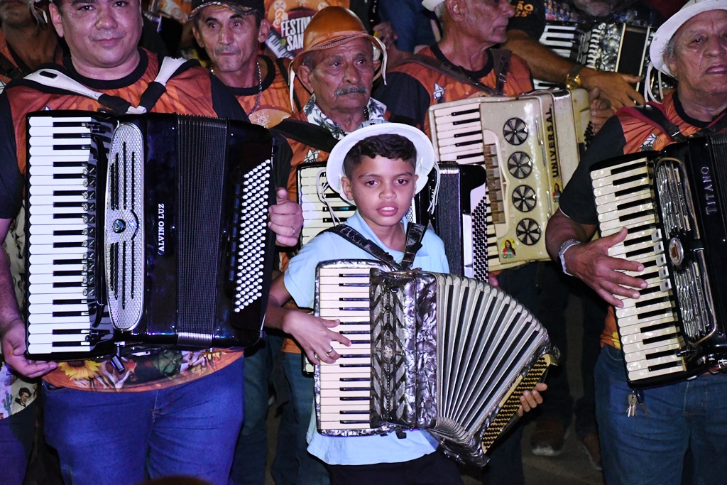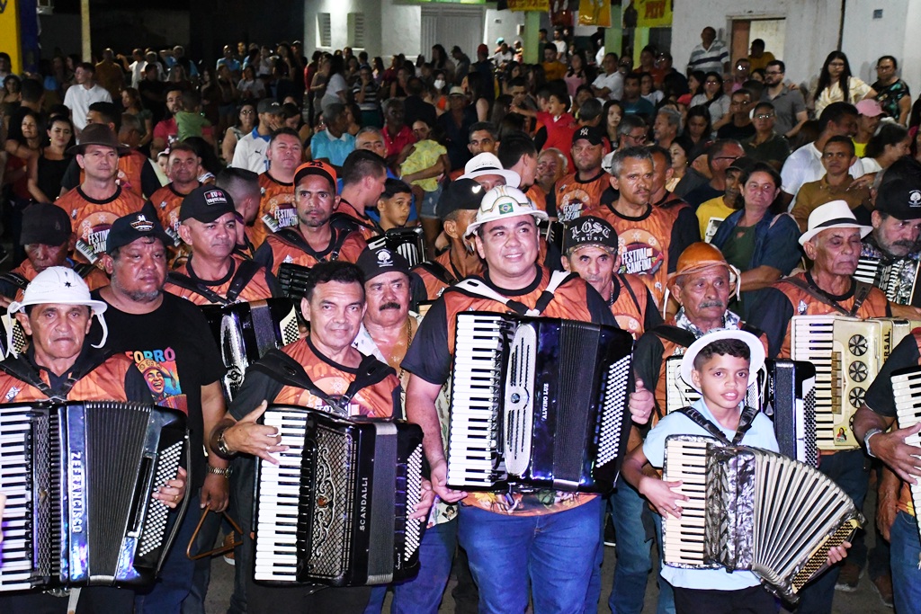 O ponto alto da noite foi o início oficial do festival, às 21h30, com apresentações musicais que destacaram o talento dos sanfoneiros da região. O palco montado no largo Pe Manoel Florêncio se transformou em um espaço de valorização da cultura popular, reforçando o papel da sanfona como protagonista da tradição nordestina.