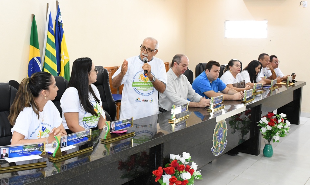 A conferência, realizada no plenário da Câmara Municipal, foi aberta com a participação de autoridades locais, entre elas o vice-prefeito Francisco das Chagas Moura (Chaguinha); a presidente da conferência e secretária municipal de Saúde, Rayla Nascimento Leal, a presidente do Conselho Municipal de Saúde, Thais Aparecida Barros, o secretário geral e palestrante da conferência, Adriano de Moura Nascimento, a representante da Secretaria de Educação, Elisete Rocha, e os vereadores Velosinho (presidente da Câmara), Eduardo Café, Antônio Ramiro, José Omar e Vanderly Ferreira.