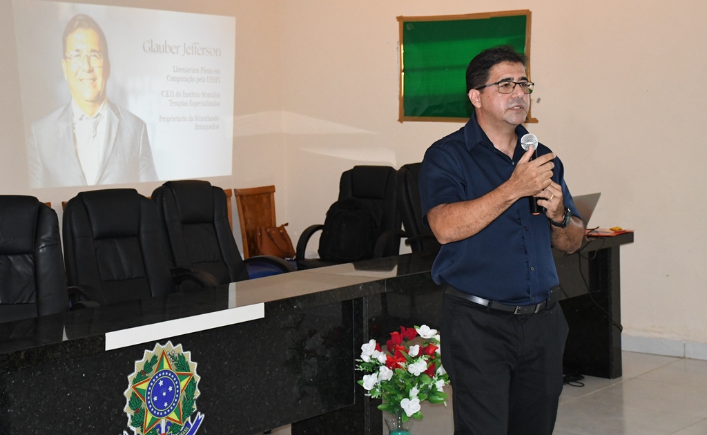 A programação do encontro incluiu duas palestras que dialogaram diretamente com o tema central do evento. O primeiro palestrante foi Glauber Jefferson de Sousa, licenciado em Computação, especialista em Engenharia de Software e CEO do Instituto Stimulus Terapias Especializadas. Em sua palestra, intitulada “Cuidar de Si para Educar com Propósito: Um Recomeço com Empatia e Leveza”, Glauber abordou a importância do autocuidado entre os profissionais da educação, destacando que o equilíbrio emocional é essencial para o bom desempenho docente e para o fortalecimento das relações escolares.