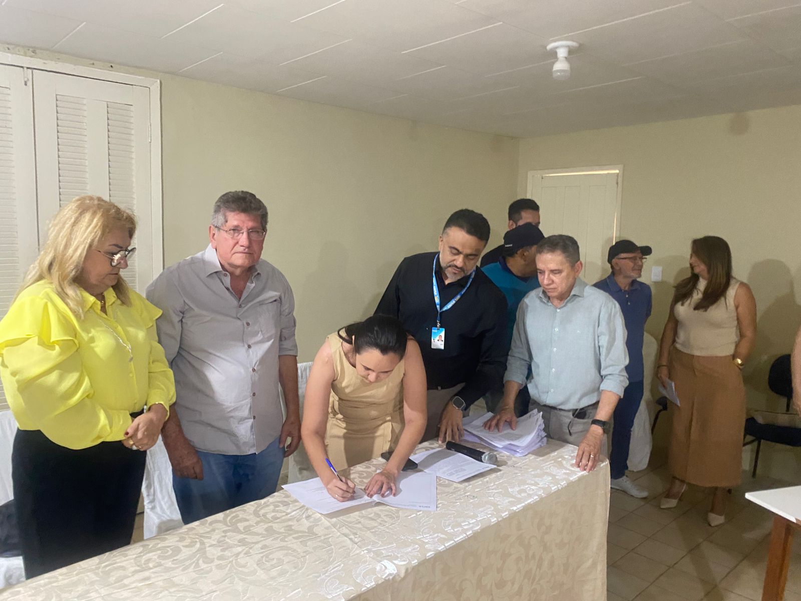 Além do Dr. Pedro Otacílio e de Levi Pinheiro estiveram presentes no ato das assinaturas a primeira-dama e atual secretária de saúde, Hortalina Bezerra; os secretários George Rocha (Administração); Pelva Fialho (Assistência Social); Diassis Pepial (Agricultura); João Deolindo (Chefe de Gabinete); Lurdinha (ex-secretária de Assistente Social) e beneficiários.