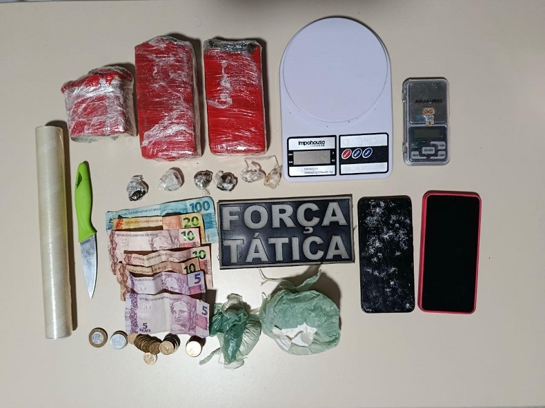 Os policiais ainda encontraram no imóvel balança de precisão e materiais utilizados para o preparo e embalagem da droga.