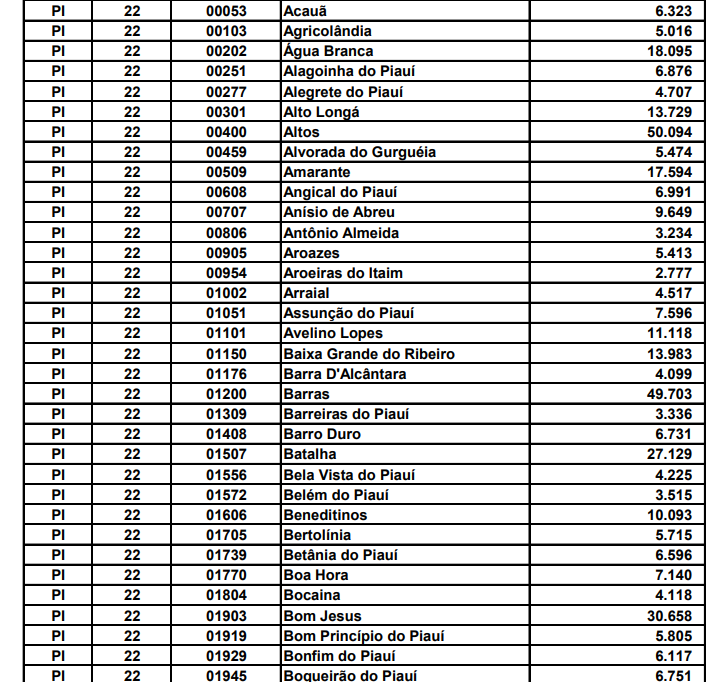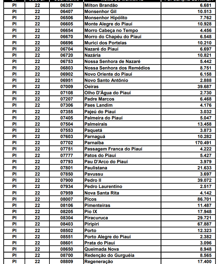De acordo com essa estimativa, 14 municípios piauienses detêm 50,1% do total da população do estado.