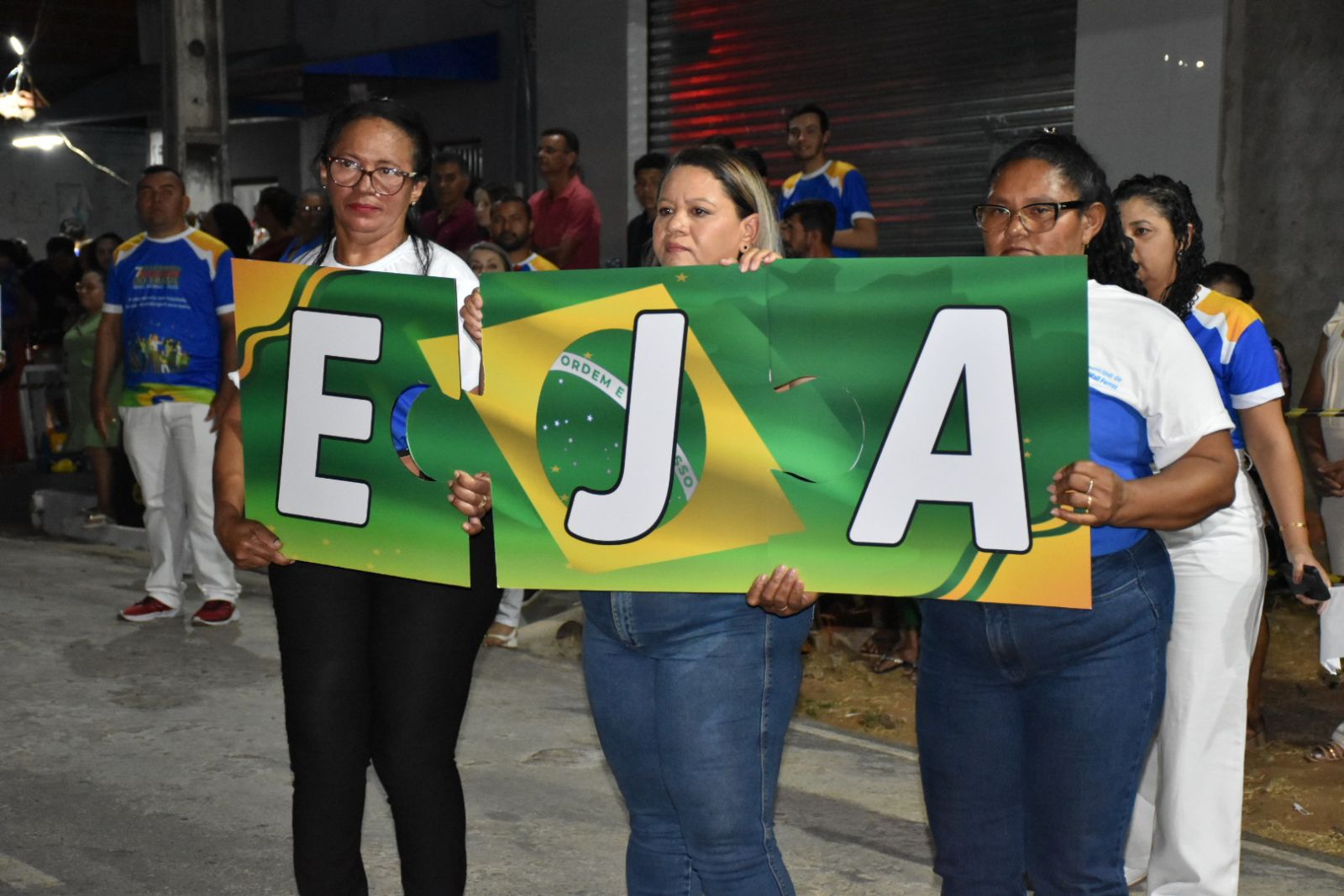 Alunos da Educação de Jovens e Adultos (EJA) também participaram do momento e mostraram que nunca é tarde para retomar os estudos. Um aluno do programa leu uma mensagem durante o desfile.