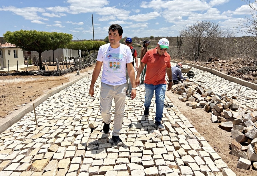 Nesta semana, o gestor, ladeado por sua equipe de governo, pelos vereadores Naldo Barros e Ataíldo Reis, pelo secretário de Administração Jocieldo Lacerda, pelo ex-prefeito Souzinha, pelo procurador jurídico do município, Dr. Arminio, e por colaboradores da localidade, visitou as obras de pavimentação em paralelepípedo no povoado Caraíbas, localizado a cerca de 10 km da sede, e destacou os avanços significativos da intervenção, que tem mudado a paisagem e a vida dos moradores.
