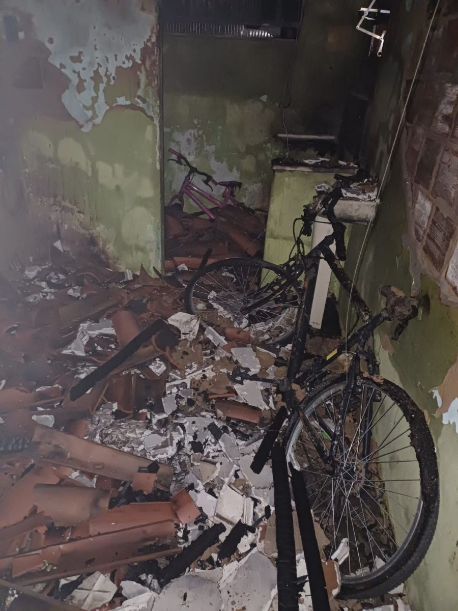 De acordo com a corporação, o incêndio concentrava-se em um cômodo, possivelmente a cozinha, mas se propagou para a sala, atingindo parte do teto e do forro.