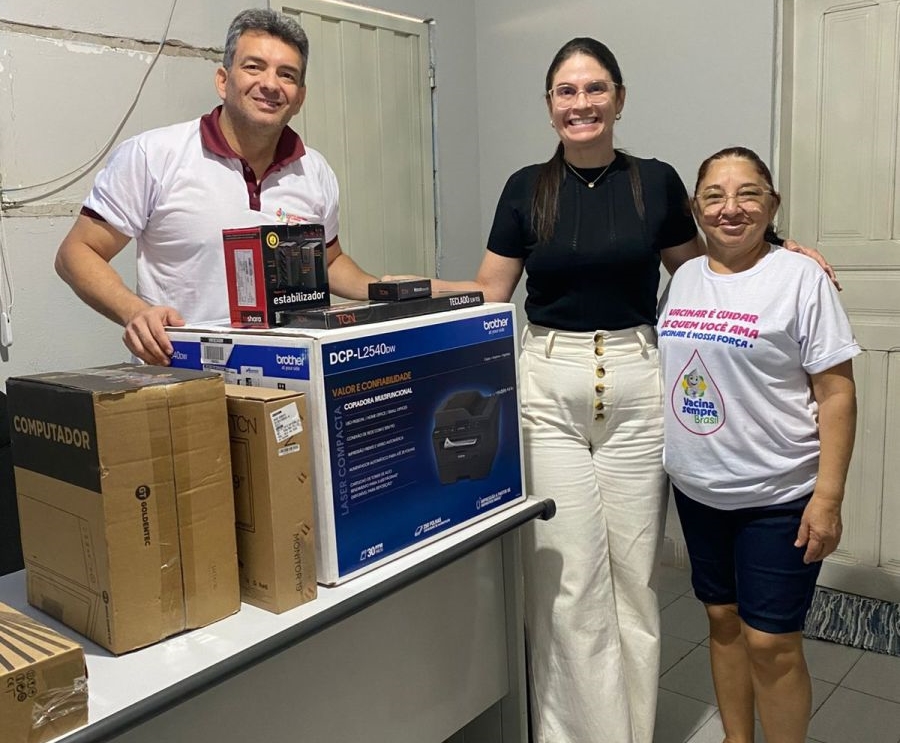 Ao todo, foram entregues nove notebooks, duas impressoras e um computador de mesa, que serão distribuídos entre os postos de saúde, otimizando os processos administrativos e o registro das informações dos pacientes. O ato contou com a presença do secretário municipal de Saúde, Marcone Rodrigues, da coordenadora da Atenção Primária à Saúde, Tânia Carvalho, além de médicos, enfermeiros e agentes comunitários de saúde.
