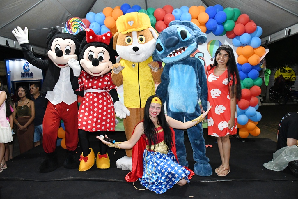 O evento contou com a presença do grupo Ra The Bum, de Teresina, que trouxe vários personagens infantis que encantam gerações, como Chase e Rubble, da Patrulha Canina, o carismático casal Mickey e Minnie, a Mulher Maravilha, o querido Bita, do Mundo Bita, além de Lilo e Stitch, Rick, dos Bolofofos, e muitos outros. As crianças vibraram com a interação, dançaram, tiraram fotos e participaram das atividades preparadas especialmente para elas.