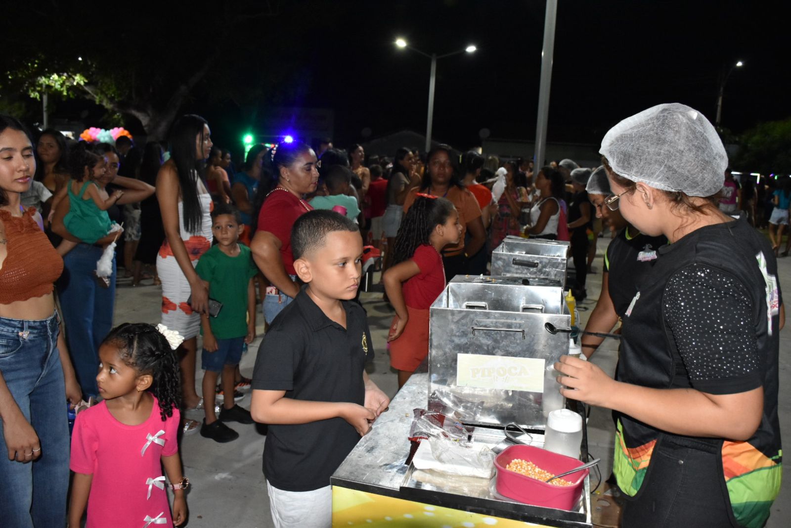 A programação contou com algodão doce, pipoca, lanches e brinquedos, além da presença de personagens infantis e do trem da alegria.