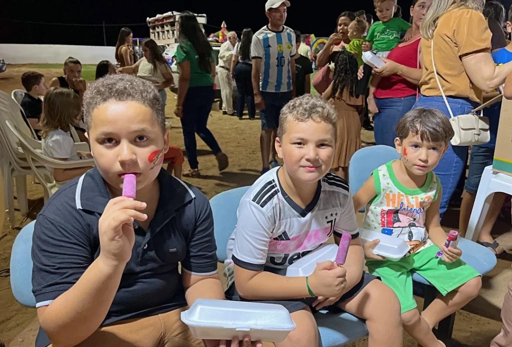 A criançada também foi contemplada com distribuição de lanches, pipoca, cachorro-quente, algodão doce e picolé, itens que tornaram o fim de tarde ainda mais especial.