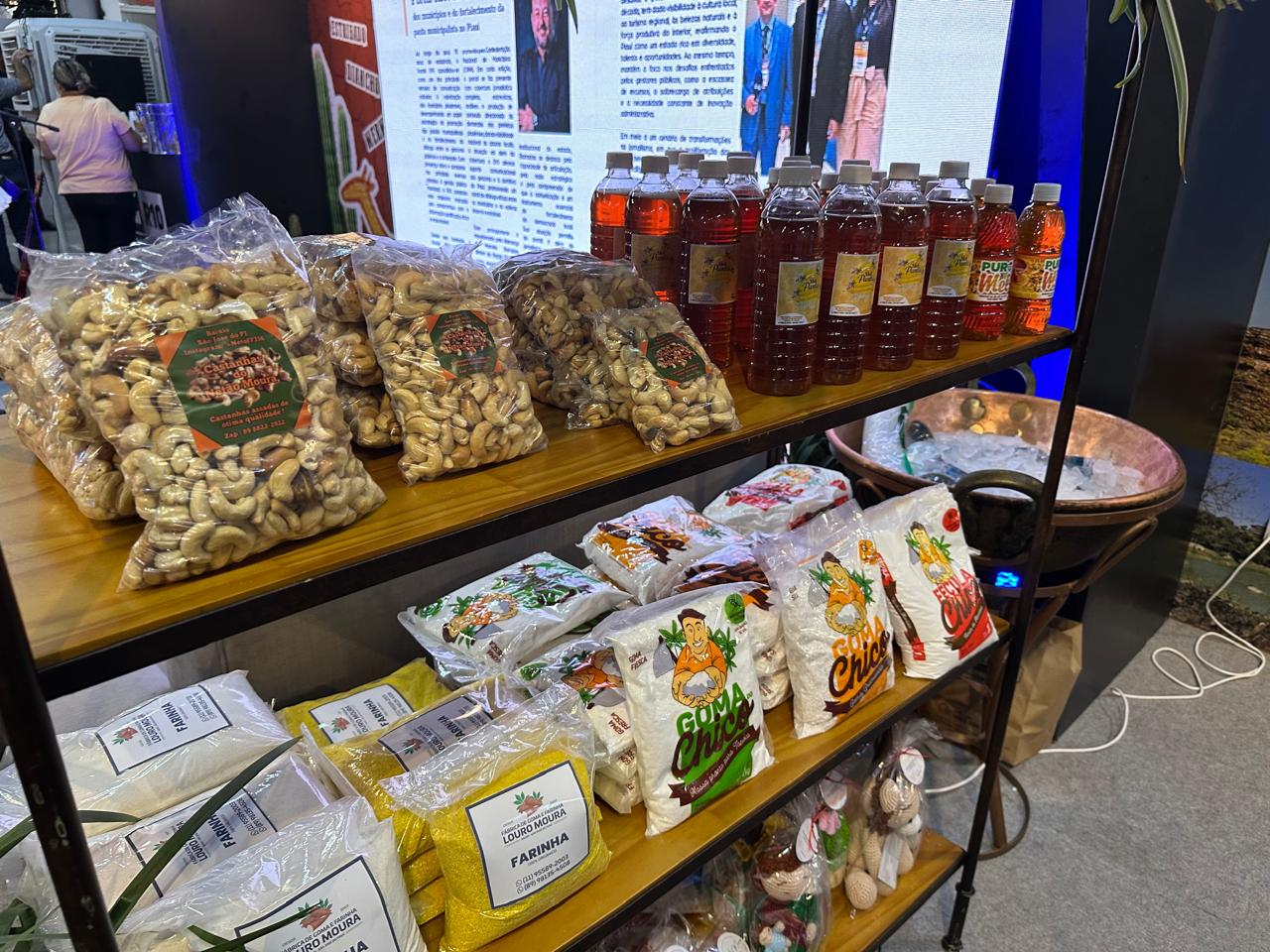 O estande também valoriza a Goma como uma das principais produções e fontes de economia do município. Outras produções se fazem presentes como a Farinha, castanha, doces, sabão e o artesanato local.