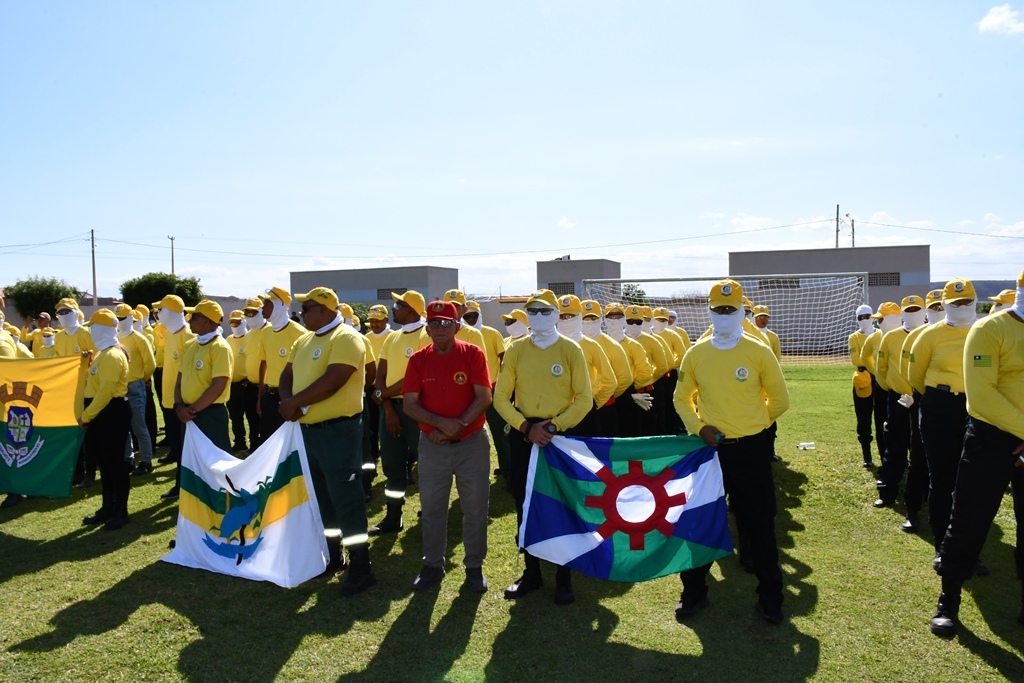 Antes da solenidade, porém, os brigadistas estiveram no Estádio Municipal, onde divididos em equipes participaram de sobrevoos no helicóptero esquilo do Batalhão de Operações Aéreas (BOPAer) da Polícia Militar, que tem sido acionado e utilizado em várias operações de combate a incêndios de grandes proporções no Estado.