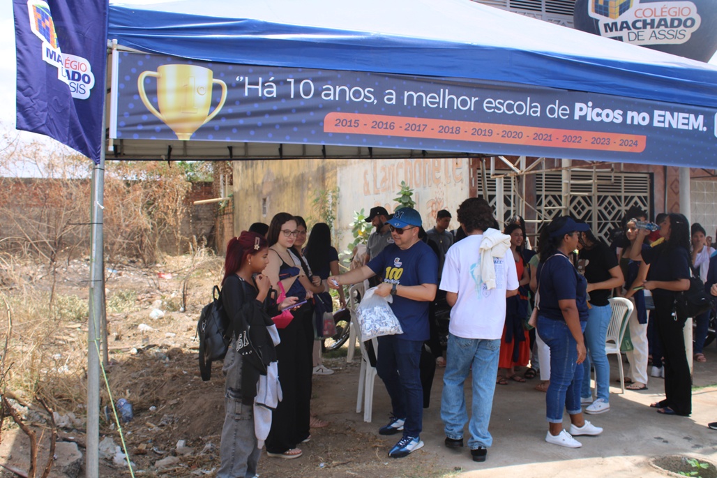 Mais uma vez, o Colégio Machado de Assis demonstrou seu compromisso com o sucesso de seus estudantes ao montar pontos de apoio estratégicos na entrada dos locais de prova do Exame Nacional do Ensino Médio (ENEM) neste domingo, 09. A iniciativa, que já é uma tradição da instituição, visa oferecer suporte moral e força aos alunos antes de enfrentarem o desafio do exame.