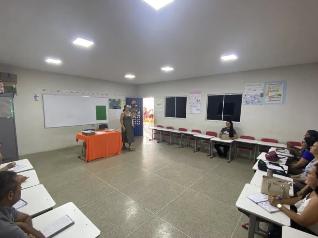 Durante o momento, a coordenadora Leiridiana destacou a importância do encontro para o fortalecimento das práticas pedagógicas.