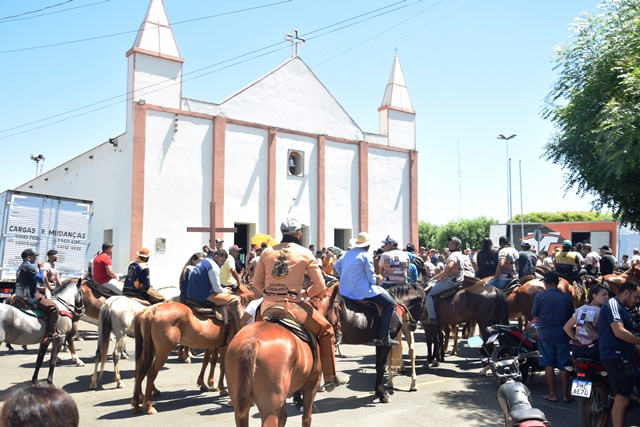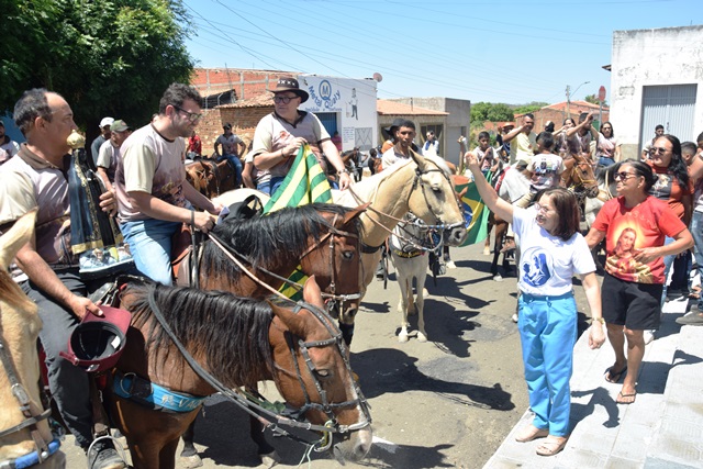 A chegada foi marcada pela tradicional bênção na Igreja Matriz, momento de forte simbolismo religioso e cultural para o povo sertanejo.