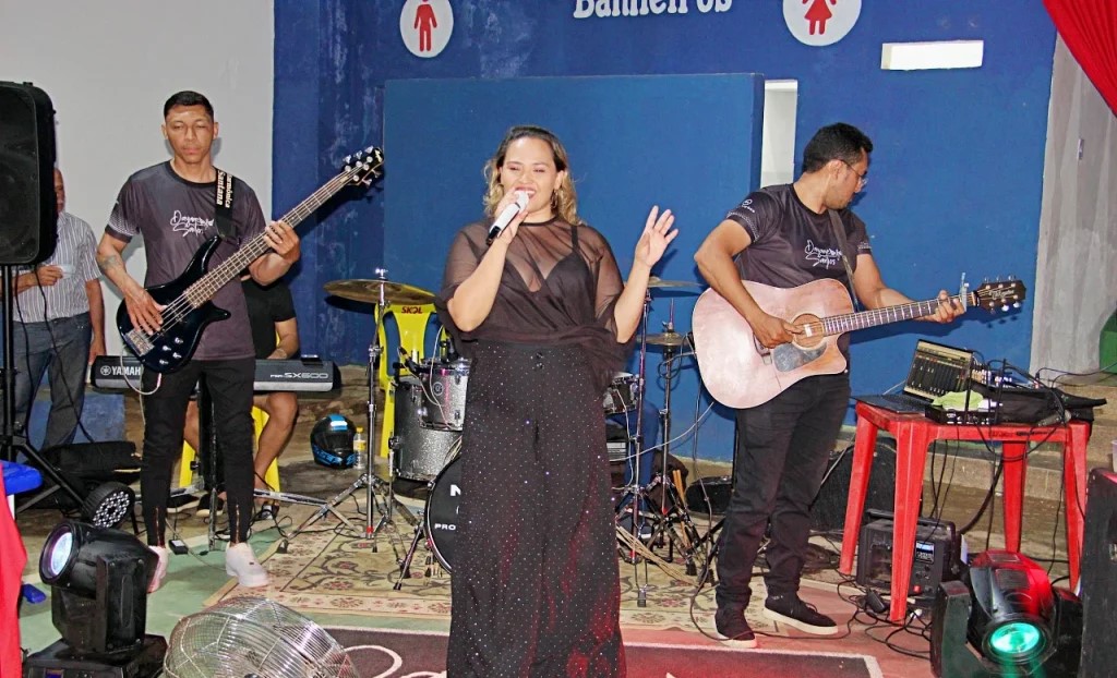 A noite festiva continuou ao som da cantora Dayane Santos, conhecida na região de Picos.