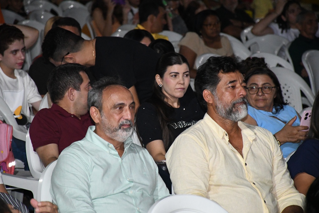 A programação artística teve sequência com a apresentação emocionante do Coral Infantil, que encantou o público com canções natalinas. Logo após, o momento mais esperado da noite tomou conta da praça: junto com o prefeito, o público participou da contagem regressiva para o acender das luzes, iluminando todo o espaço e marcando oficialmente o início das festividades natalinas.