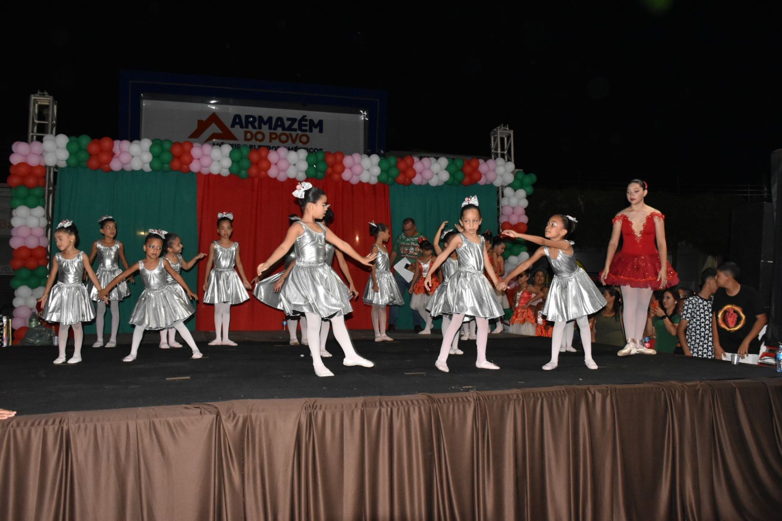 Além da decoração, o evento reuniu apresentações culturais produzidas ao longo do ano pelos serviços oferecidos à comunidade. Alunas do Ballet do Serviço de Convivência e Fortalecimento de Vínculos, que recebem aulas gratuitas, abriram a programação com coreografias das turmas Baby Class e Juvenil. Logo depois, o Grupo da Melhor Idade, que acompanha cerca de 100 idosos do município, subiu ao palco para a sua participação especial.