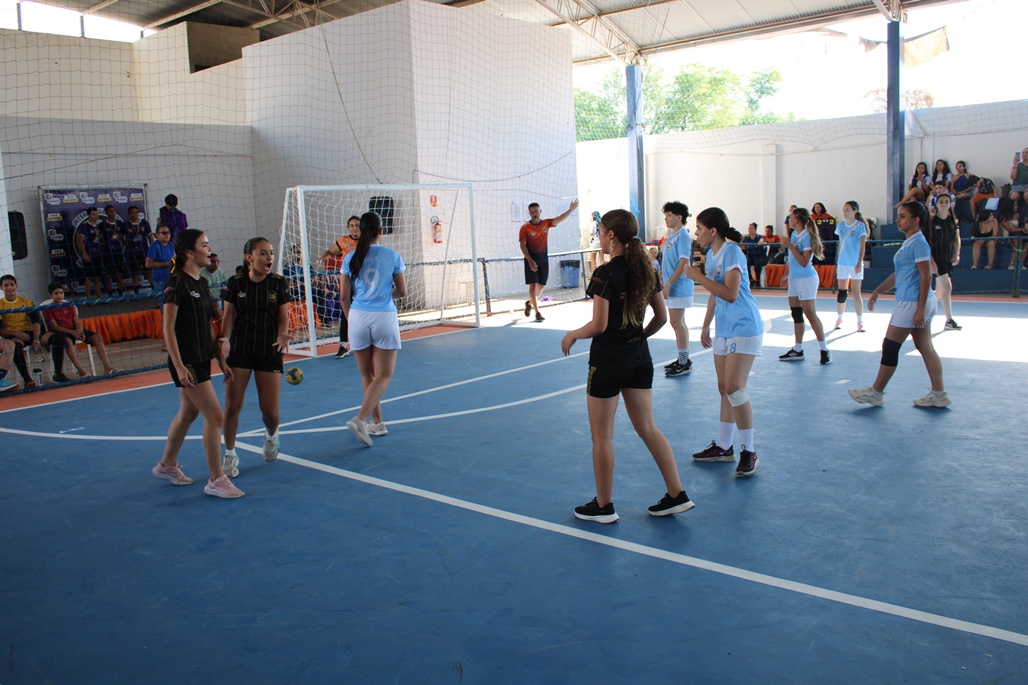 A professora Raquel Ghandi, responsável pelo handebol, informou que a disputa feminina reuniu 12 times, englobando alunas do 6º ano do Fundamental II ao 2º ano do Ensino Médio.