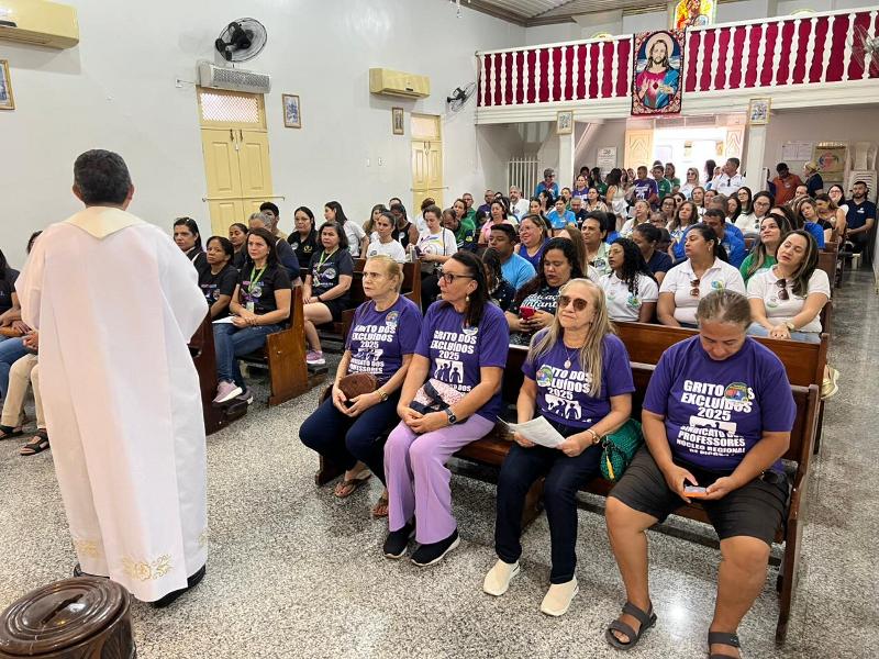 A concentração ocorreu às 7h, na Igrejinha do Sagrado Coração de Jesus, onde os participantes foram acolhidos com uma celebração conduzida pelo Padre Pio Feitosa.
