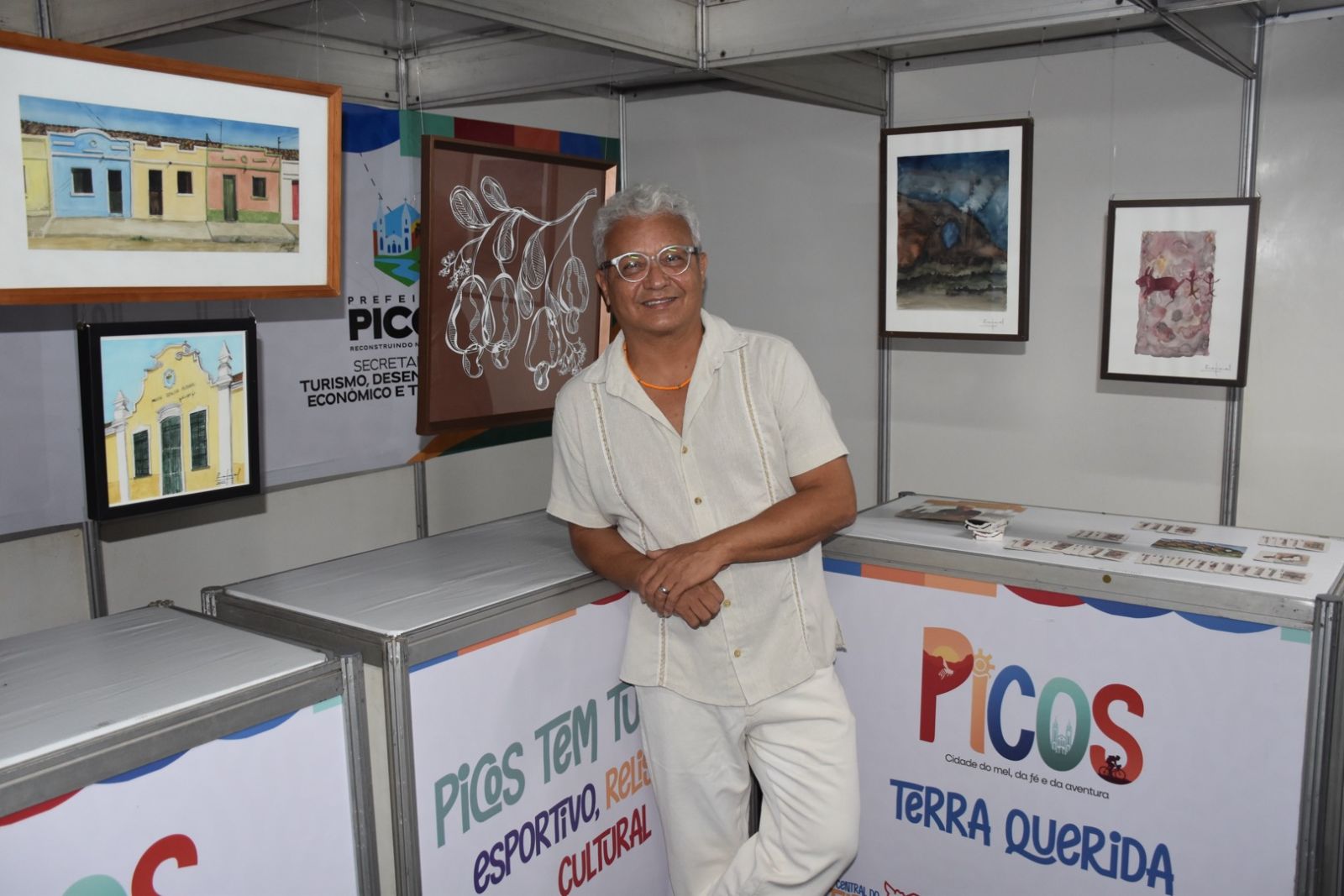 As obras mostram Picos através do profissional e reúnem pontos históricos e religiosos da cidade, pintados em aquarela, assim como releituras de obras mundialmente conhecidas.