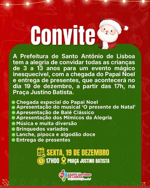 O encanto e a magia do Natal mais uma vez tomarão conta da cidade de Santo Antônio Lisboa.