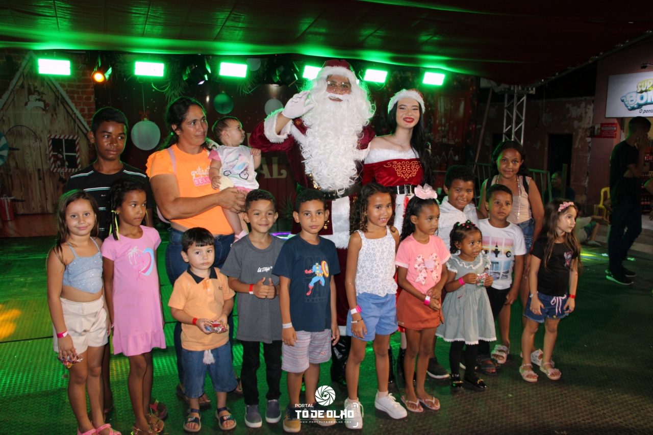 O evento, voltado para crianças de 3 a 13 anos, aconteceu na Praça Justino Batista, que recebeu uma grande estrutura com palco, sistema de som, iluminação especial, ornamentação natalina e diversos brinquedos. Para garantir a organização e segurança, a Prefeitura definiu algumas regras, entre elas o acesso exclusivo ao local para crianças previamente inscritas e identificadas com pulseira.