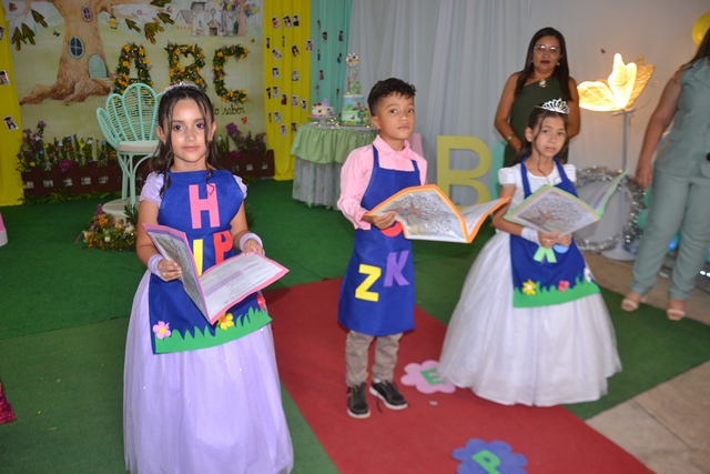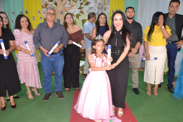A programação seguiu com os pronunciamentos das autoridades, que destacaram a importância da educação na formação cidadã e o compromisso do município com o fortalecimento do ensino. Um dos momentos mais simbólicos da noite foi a colocação do anel de formatura, representando o cuidado, o amor e o compromisso com o saber que começa a florescer na vida das crianças.