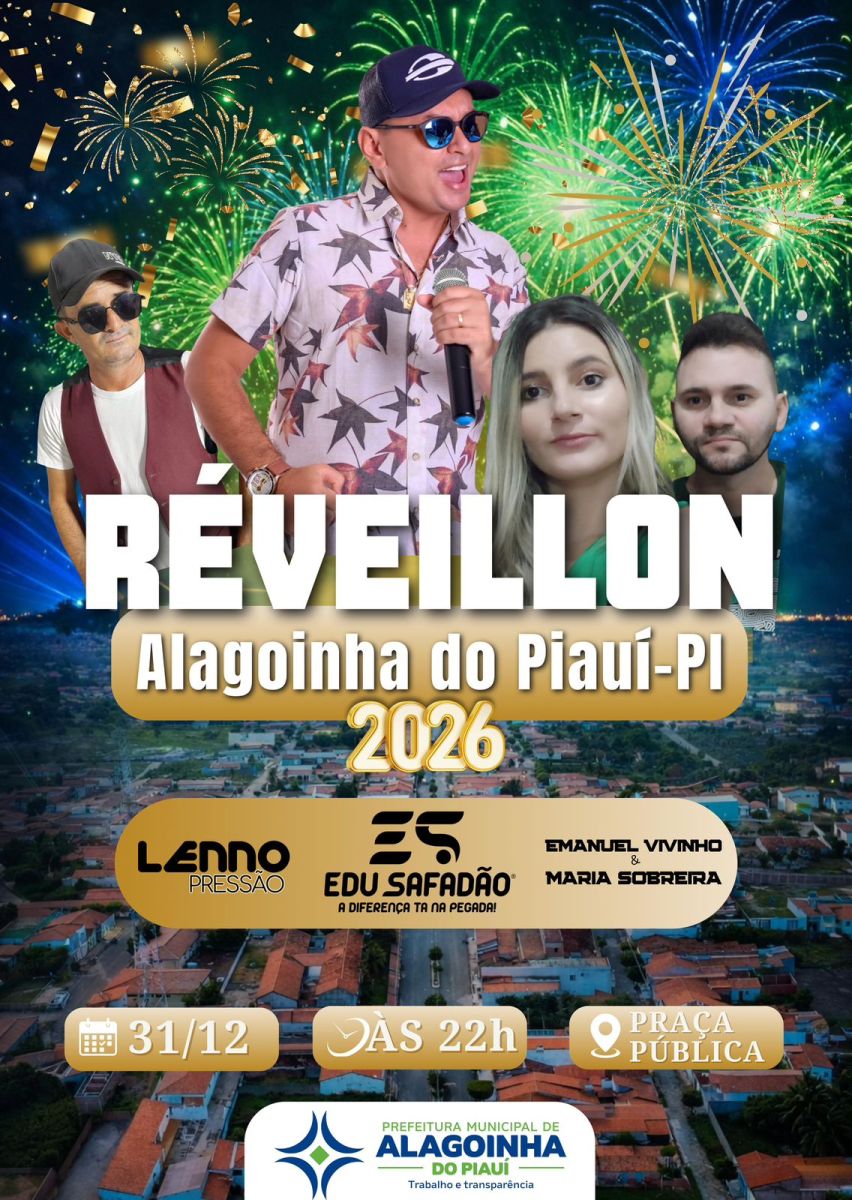 A Prefeitura de Alagoinha do Piauí, através do secretário de cultura Valdineres Rocha, prepara uma grande programação para celebrar a chegada de 2026 com um show em praça pública. A gestão do prefeito Pedro Otacílio (PSD), ao lado do vice-prefeito Cícero Cauã, confirmou a contratação de atrações musicais, além de estrutura completa de palco e show pirotécnico para marcar a virada do ano no município.