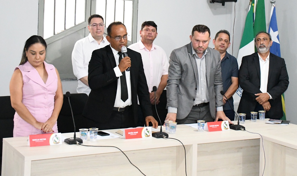 O rito da sessão teve início com a leitura da carta de renúncia do então presidente da Câmara, Fábio dos Santos Carvalho (Fábio Licínio), que formalizou sua saída do cargo. Em seguida, foi realizada a posse oficial de Rômulo Rodrigues, que passou a conduzir os trabalhos da Casa Legislativa.
